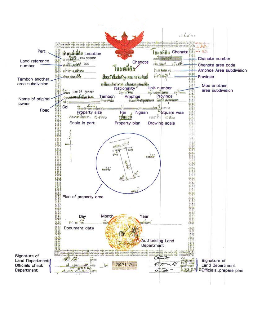 泰国地契Chanote标志是土地所有权在泰国的最高形式。Chanote意味着该地块已被准确进入国家土地调查网中。并且已由国土部门丈量和认定。快速现场检查的方法是寻找该地块周围的红色标记桩。这些红色标记桩应该有唯一的编号,这些红色标记桩表明该地块很可能有 Chanote标志。同时你也应该索取一份该地契的副本,你的律师应当在当地国土局验证。