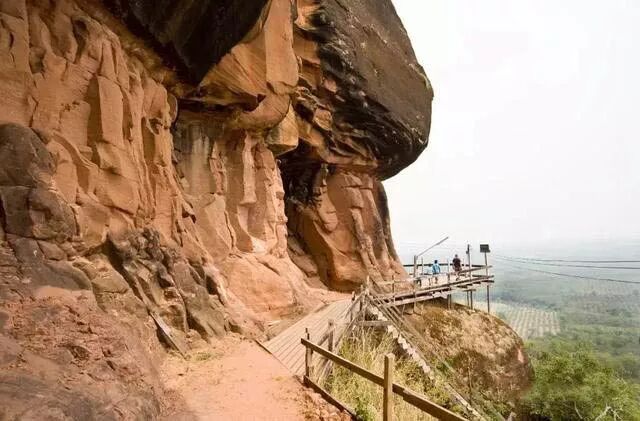 “獅子山朝拜廣場”,這個景點是因為在懸崖上矗立著一塊紅色大石頭,遠處看好像是一隻臥獅,
